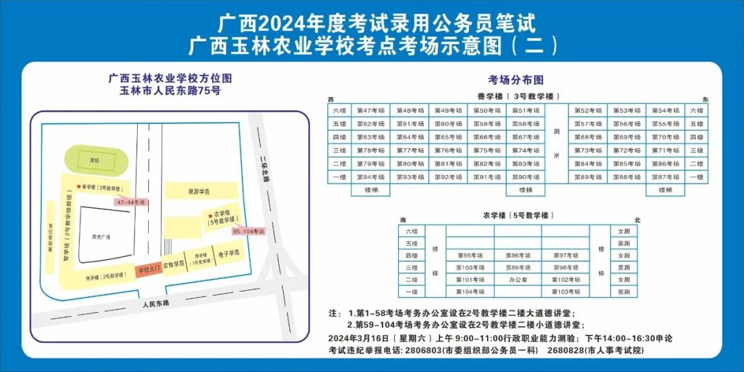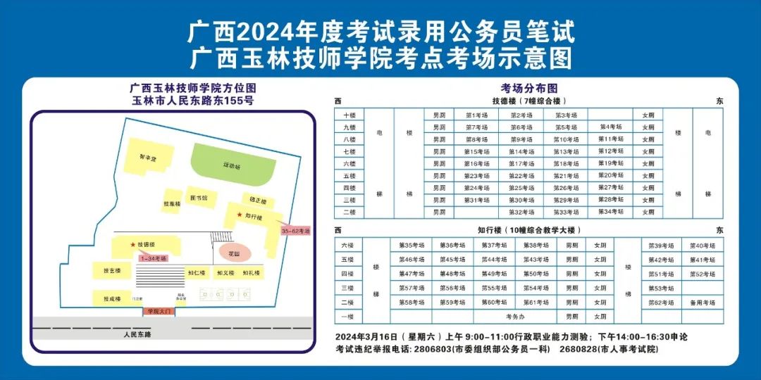 請(qǐng)及時(shí)登錄“廣西人事考試網(wǎng)”打印筆試準(zhǔn)考證并妥善保管,仔細(xì)查看準(zhǔn)考證上的考點(diǎn)信息。本次考試玉林考區(qū)共設(shè)10個(gè)考點(diǎn),各考點(diǎn)名稱、考點(diǎn)詳細(xì)地址如下:
