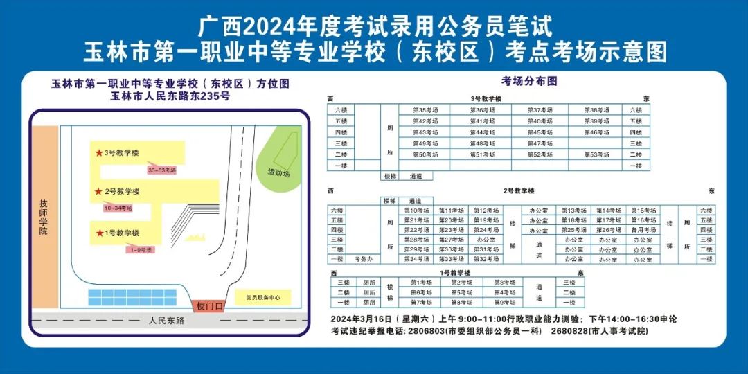 2024年選擇在玉林考區(qū)參加考試的考生人數(shù)較多,屆時(shí)考點(diǎn)區(qū)域內(nèi)的食宿、交通較為緊張。請(qǐng)?zhí)崆傲私獗救怂诳键c(diǎn)具體位置,熟悉考點(diǎn)周邊情況,根據(jù)考點(diǎn)的情況合理做好食宿安排和出行計(jì)劃。需要特別注意的是:玉林市第一職業(yè)中等專業(yè)學(xué)??键c(diǎn)是設(shè)在該校的東校區(qū)(人民東路東235號(hào));玉林市第一中學(xué)考點(diǎn)是設(shè)在該校的運(yùn)嶺路校區(qū)(二環(huán)北路1228號(hào))!