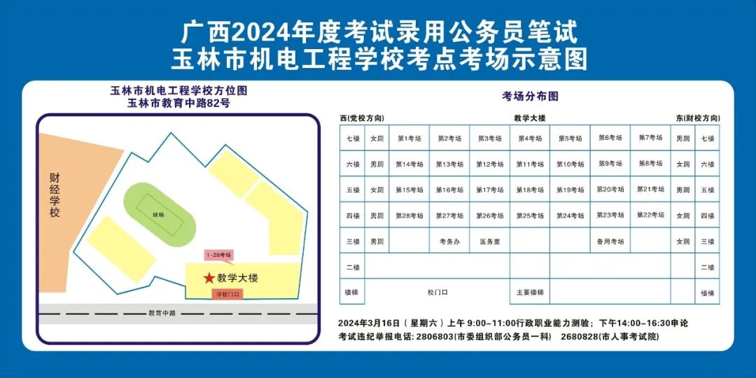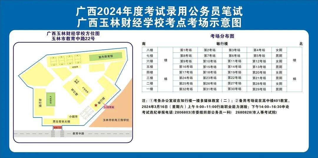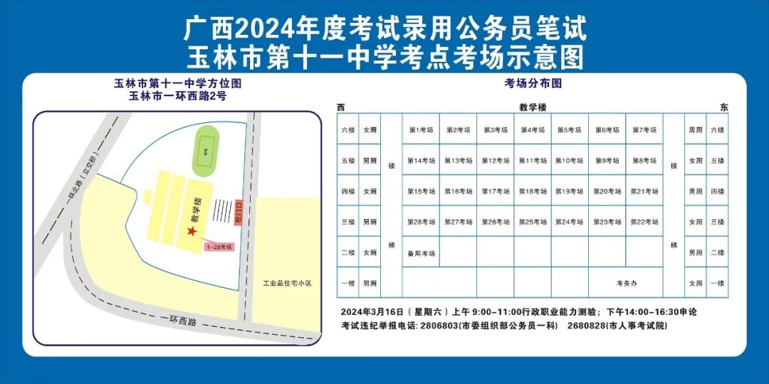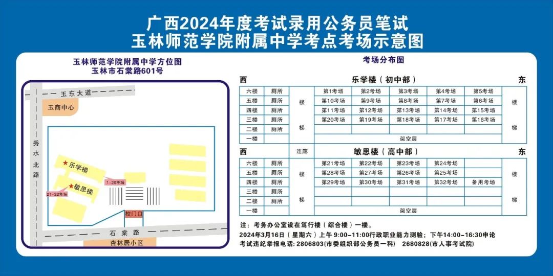 除考試當(dāng)天考生可以進(jìn)入考點(diǎn)外,考生不得提前進(jìn)入考點(diǎn)查看考場(chǎng)(學(xué)校將在大門處擺放考場(chǎng)分布示意圖),玉林考區(qū)10個(gè)考點(diǎn)的考場(chǎng)布置情況如下: