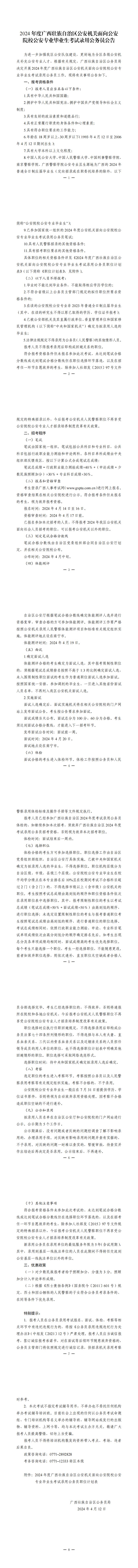 原文標題:2024年度廣西壯族自治區(qū)公安機關面向公安院校公安專業(yè)畢業(yè)生考試錄用公務員公告