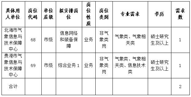 根據(jù)《氣象部門事業(yè)單位公開招聘人員管理辦法》《廣西氣象部門2025年度事業(yè)單位公開招聘工作方案》有關(guān)要求,廣西氣象部門增加招聘2025年應(yīng)屆畢業(yè)生筆試崗位(即非氣象類崗位)2個。具體事項公告如下: