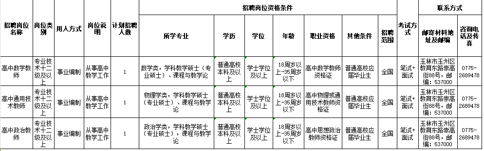 具體招聘信息請(qǐng)瀏覽玉林市人社局網(wǎng)站相關(guān)公告,以《2024年秋季期玉林市教育局直屬學(xué)校赴廣西師范大學(xué)公開招聘教師公告》為準(zhǔn)。