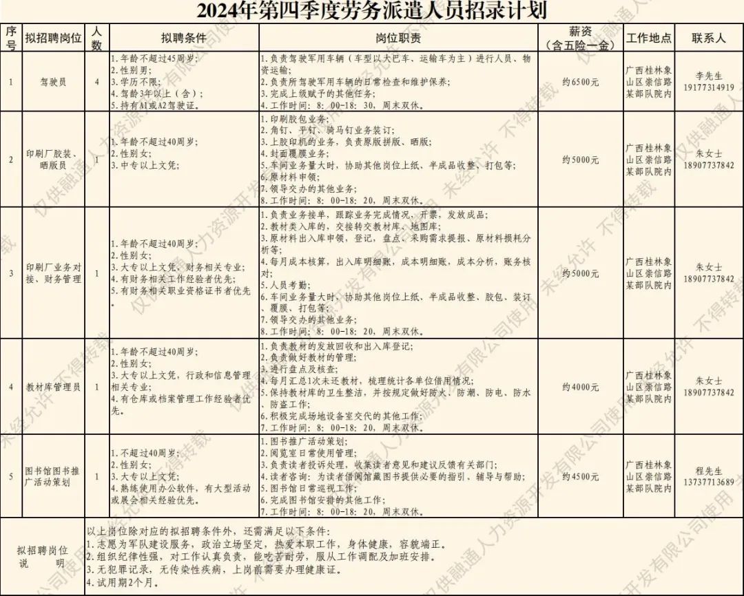 (五)公示錄用擬聘人員名單將在融通人力公司公眾號(hào)進(jìn)行公示,公示期為5個(gè)工作日。公示無異議或者反映問題不影響聘用的擬聘人員,與融通人力資源開發(fā)有限公司簽訂勞務(wù)派遣勞動(dòng)合同,辦理入職相關(guān)手續(xù)。
