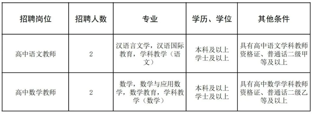 根據(jù)發(fā)展需要,學(xué)校擬招聘高中語(yǔ)文、高中數(shù)學(xué)頂崗教師共4人,具體招聘信息如下: