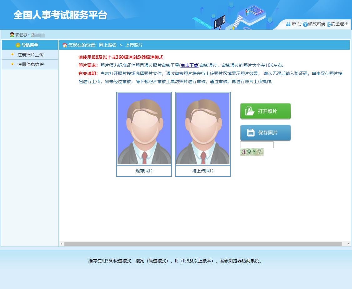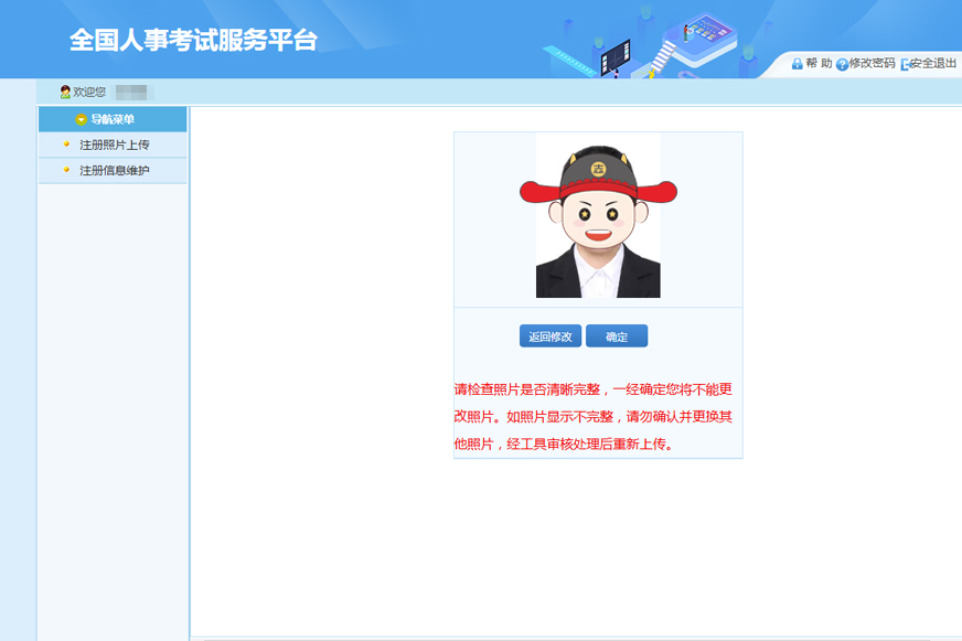 第四步:上傳報名照片(注:需要用電腦端下載照片處理工具,對照片進行審核,準備好一張紅藍白底證件照,進入照片審核處理工具進行處理,完成之后用處理好的照片在此頁面上傳)