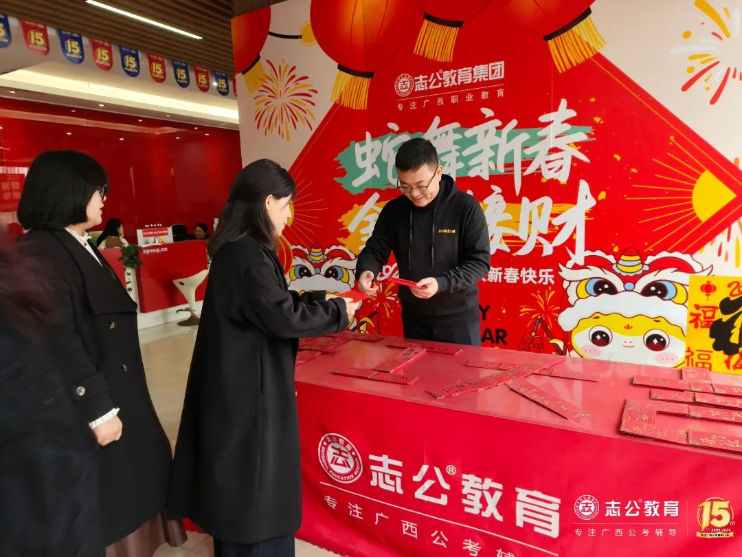 春節(jié)的喜慶氣氛猶在,而我們的心中早已裝滿了對(duì)未來(lái)的憧憬和期待。在未來(lái)的日子里,志公教育集團(tuán)將一如既往地秉承12條企業(yè)核心價(jià)值觀,為廣西公職教育提供良好的產(chǎn)品和服務(wù),實(shí)現(xiàn)企業(yè)使命——幫助人才實(shí)現(xiàn)更高質(zhì)量的就業(yè),為員工創(chuàng)造最具幸福感的企業(yè),用教育成就夢(mèng)想!相信在全體員工的共同努力下,志公教育一定能夠開創(chuàng)更加輝煌的未來(lái)![]()