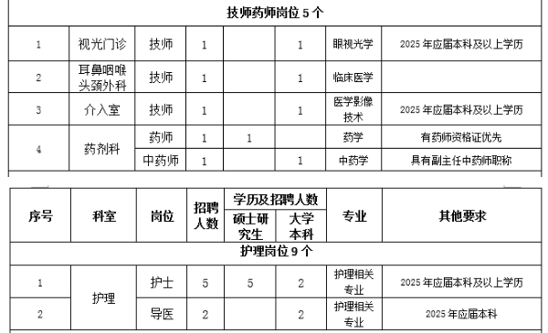 1.思想政治素質(zhì)好,擁護黨的路線、方針、政策。2.遵紀守法,醫(yī)德品行良好,有較強的事業(yè)心、責任心和進取心。3.身體健康,能滿足應(yīng)聘崗位需要。4.具備相應(yīng)的學歷和學位,有履行應(yīng)聘崗位職責的專業(yè)能力、技能條件。5.具有團隊精神,有良好的溝通能力。6.具備應(yīng)聘崗位所需要的其他條件。7.服從單位安排。