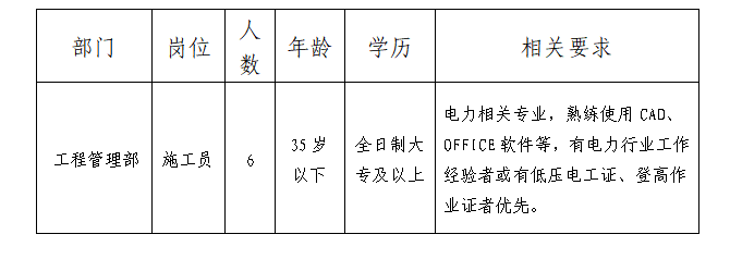 要求服務(wù)意識(shí)強(qiáng),辦事穩(wěn)重,作風(fēng)扎實(shí),服從工作安排、身體健康,具備崗位專(zhuān)業(yè)要求。具體招聘崗位及招聘條件如下表: