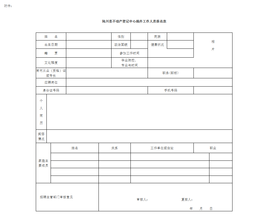 附件:《陸川縣不動產(chǎn)登記中心編外工作人員報(bào)名表》