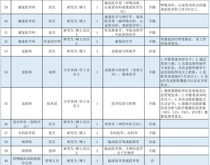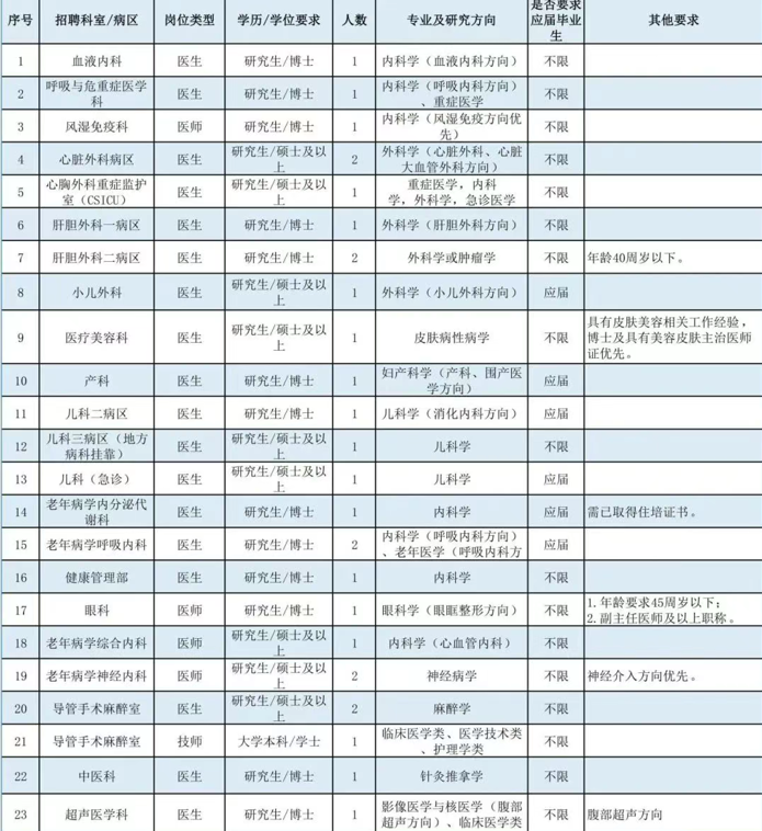 博士崗位:全年長期招聘(我院將根據(jù)報名情況分批次安排面試,具體以醫(yī)院通知為準),崗位招滿即關(guān)閉報名通道。