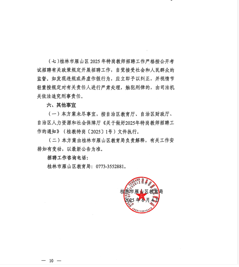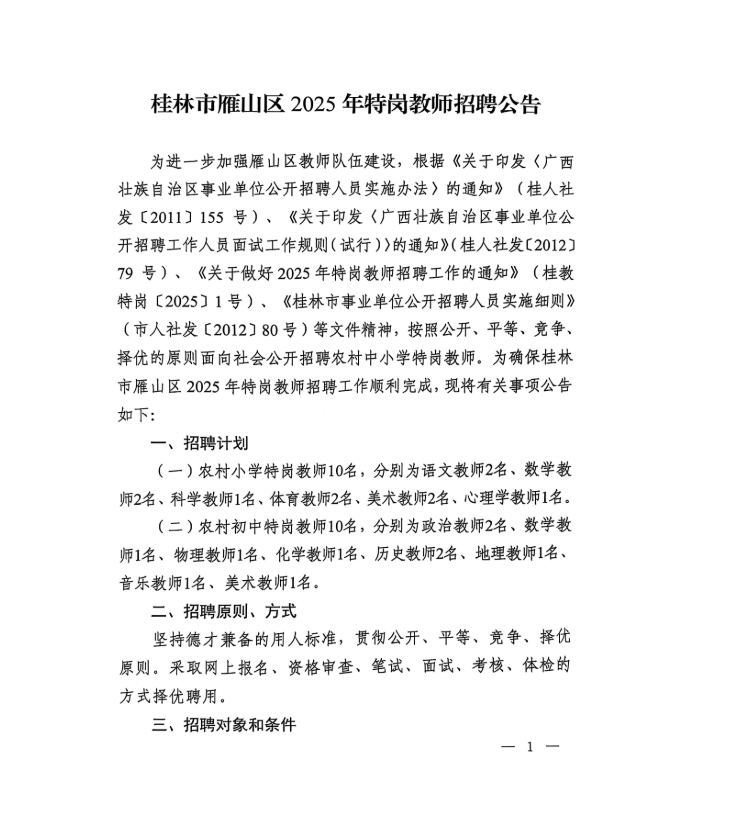 桂林市雁山區(qū)2025年特崗教師招聘公告