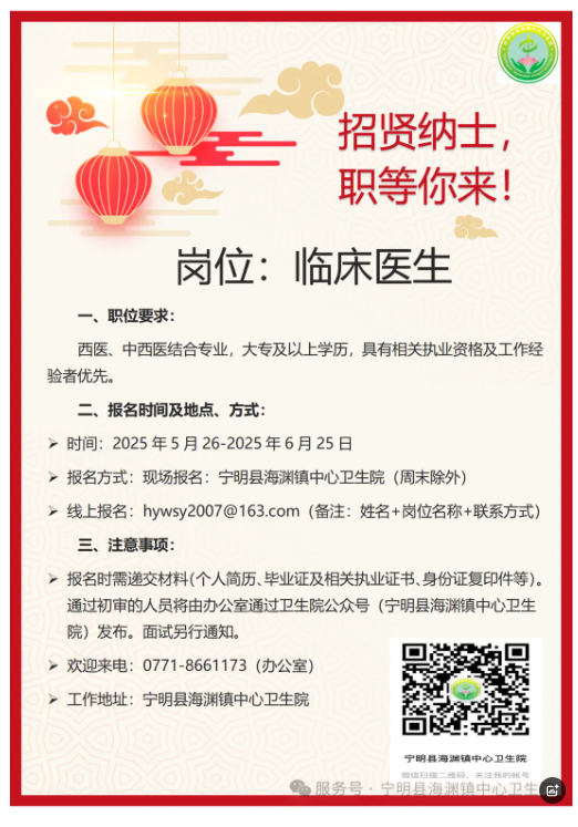 原文標題:寧明縣海淵鎮(zhèn)中心衛(wèi)生院招聘信息