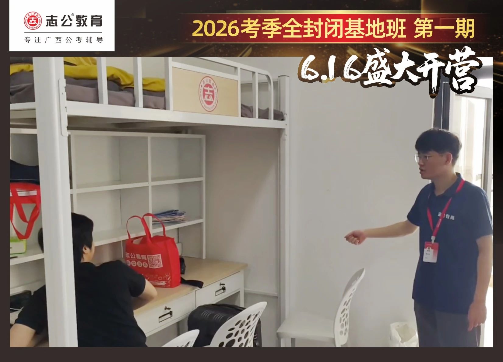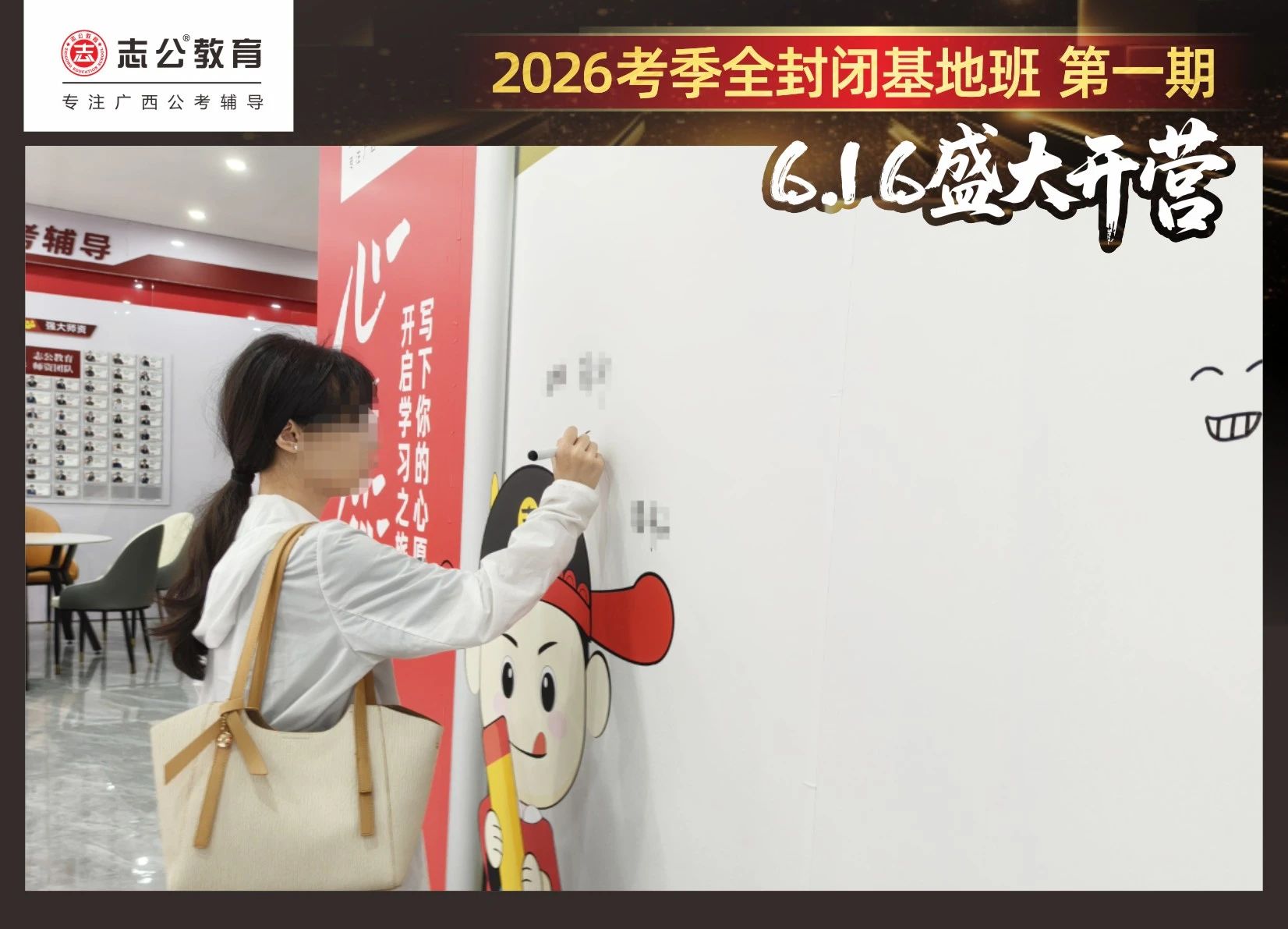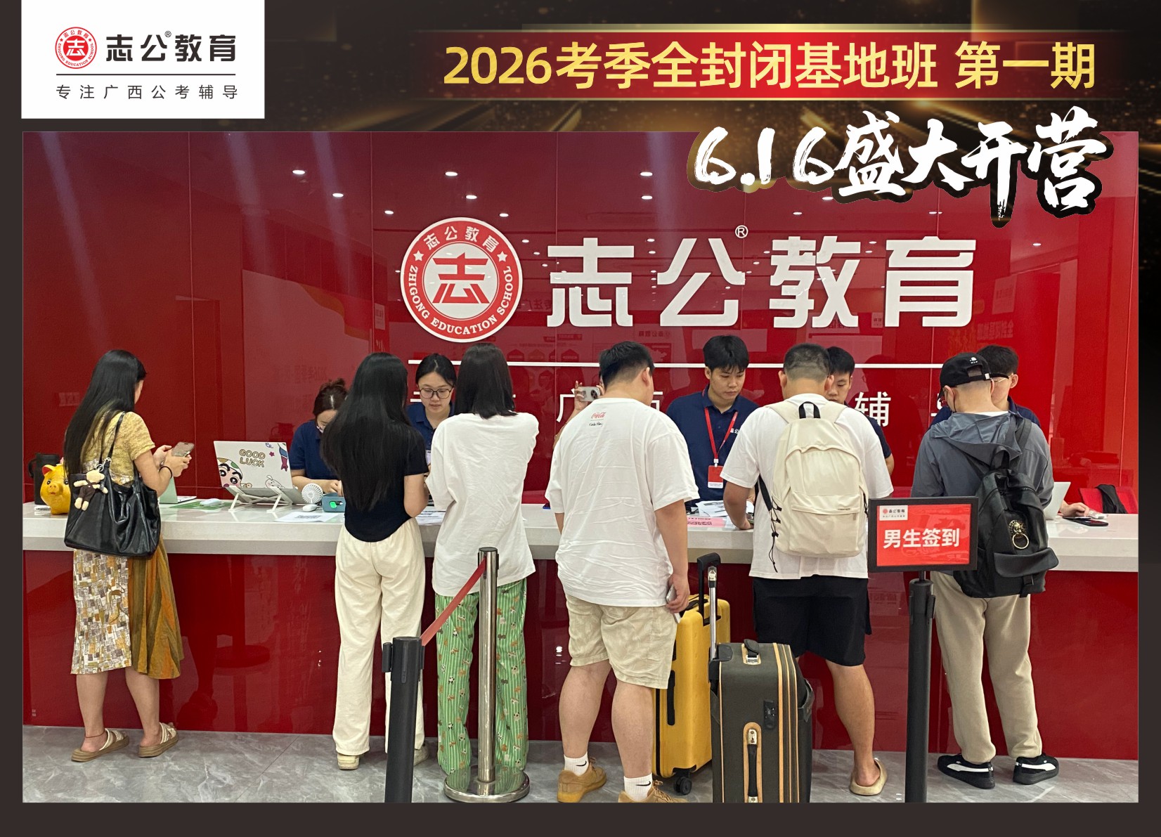 由于這段時(shí)間受臺(tái)風(fēng)影響,南寧迎來(lái)下雨天,但學(xué)員們滿懷先一步備考,快一步成功圓夢(mèng)的滿滿炙熱信心,早早就在志公教育(中關(guān)村)全封閉基地前臺(tái)等候,6月16日,志公教育26考季全封閉基地班第1期的學(xué)員們齊聚一堂,正式開啟他們的公考備戰(zhàn)之旅。簽到環(huán)節(jié)作為基地班課程的第一站,不僅是對(duì)學(xué)員們的歡迎儀式,更是他們邁向夢(mèng)想的第一步。