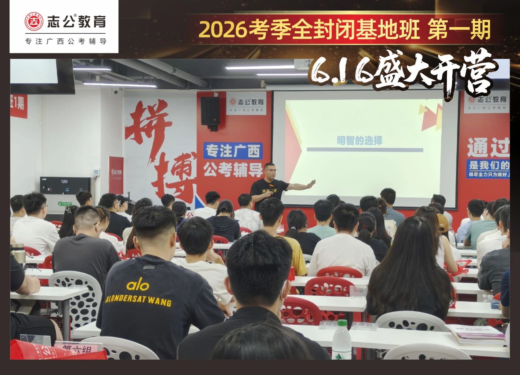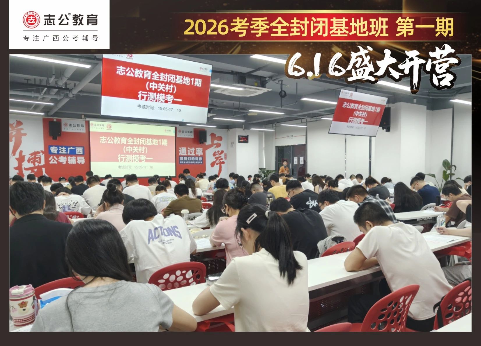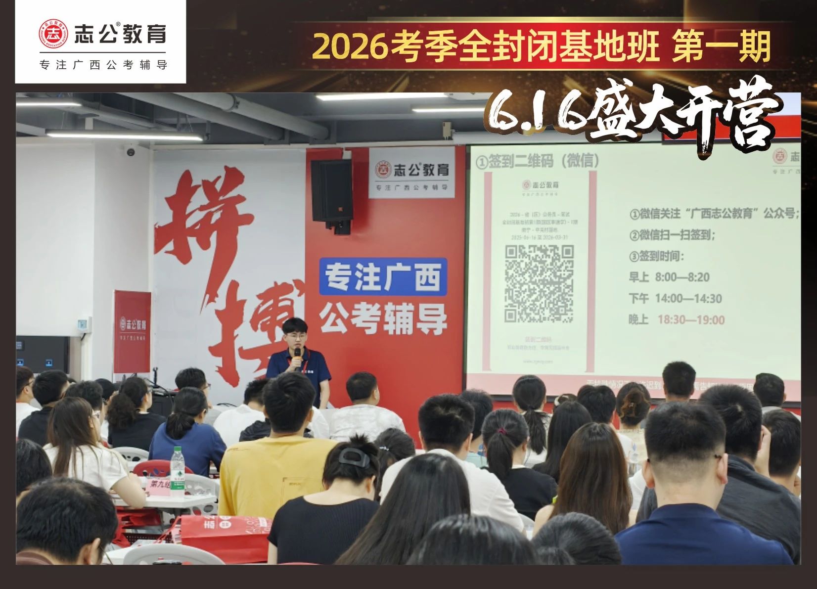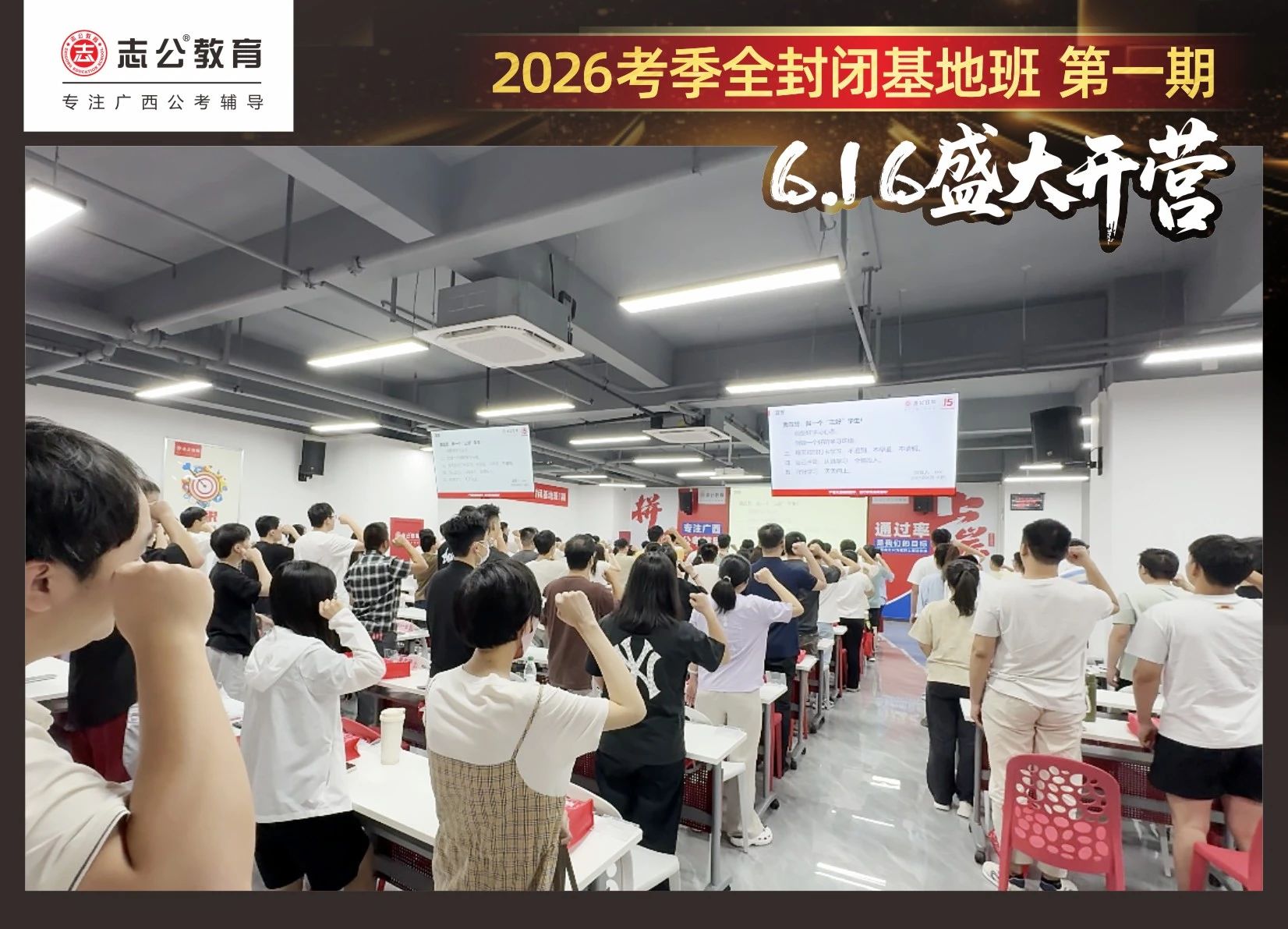 大家稍作休息之后,就是咱們期待已久的開班典禮啦!學(xué)員們?cè)诎嘀魅蔚囊龑?dǎo)下分組就坐。大家目光灼灼,熱情高漲,迫不及待想要開啟學(xué)習(xí)模式??催@座無(wú)虛席的盛況,志公26考季全封閉基地班第1期課程實(shí)力名不虛傳,各位學(xué)員用飽滿的熱情和積極的態(tài)度迎接此次課程的開展,期待大家能夠完成自己的蛻變和成長(zhǎng)!
