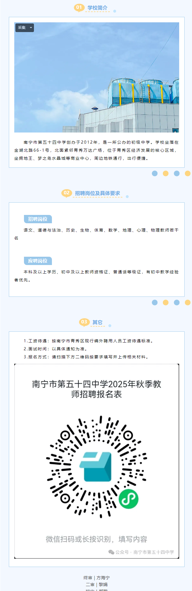 原文標題:南寧市第五十四中學2025年秋季學期招聘