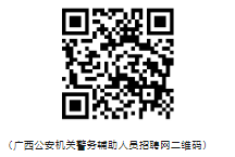 5.網(wǎng)上報名:應(yīng)聘人員登錄廣西公安機關(guān)警務(wù)輔助人員招聘網(wǎng)(https://fjgl.gat.gxzf.gov.cn:9099/)或掃描以下二維碼進行網(wǎng)上報名。