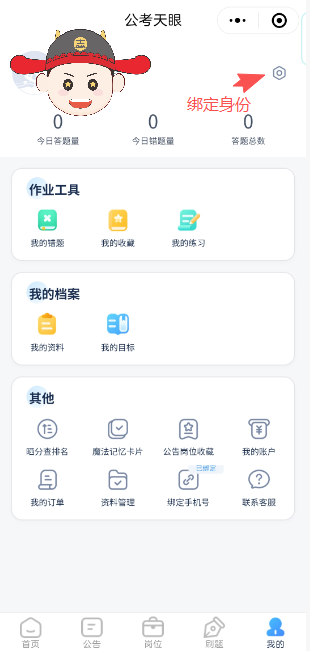 值得一提的是,點(diǎn)擊設(shè)置綁定身份后,會增加更多免費(fèi)功能供大家使用哦!所以大家進(jìn)入【公考天眼】小程序后別忘了進(jìn)行綁定,解鎖更多功能~