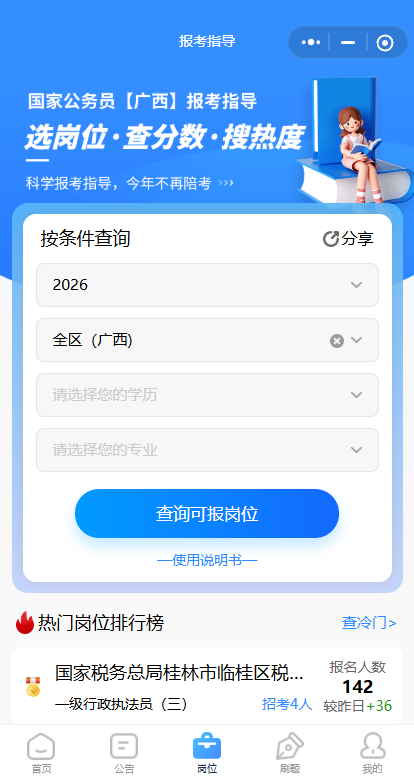 識別下方二維碼丨可單獨(dú)下載廣西考區(qū)職位表