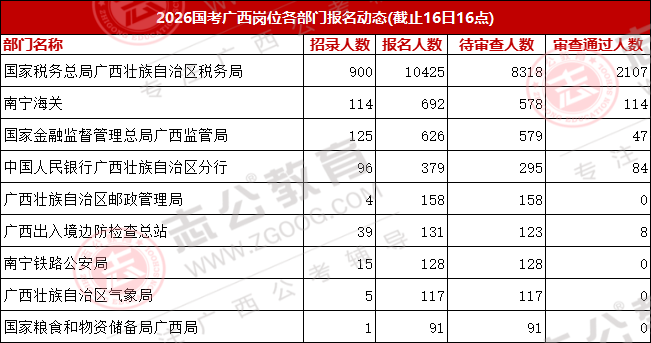 今天是報(bào)名第二天,小伙伴可要抓住此次上/岸機(jī)會(huì)啦!來(lái)看看廣西今天的報(bào)名數(shù)據(jù)吧。截止10月16日下午16:00,已經(jīng)有13116名考生報(bào)名,最熱崗220人報(bào)名!從各項(xiàng)數(shù)據(jù)來(lái)看,部分考生可能還持觀望態(tài)度。在接下來(lái)的報(bào)名時(shí)間里,可能會(huì)迎來(lái)報(bào)名人數(shù)大幅增長(zhǎng)的情況,大家可以密切關(guān)注。