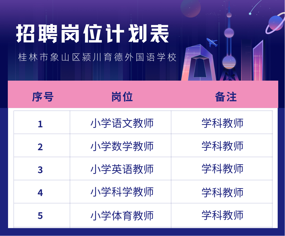 招聘條件:具有大學(xué)本科或以上學(xué)歷;具備專業(yè)對(duì)口的相應(yīng)從業(yè)資格證;年齡在25-45周歲(特別優(yōu)秀的年齡可適當(dāng)放寬);有班主任管理經(jīng)驗(yàn)、有特長(zhǎng)和在公、民辦學(xué)校有任教經(jīng)驗(yàn)的優(yōu)先錄用。