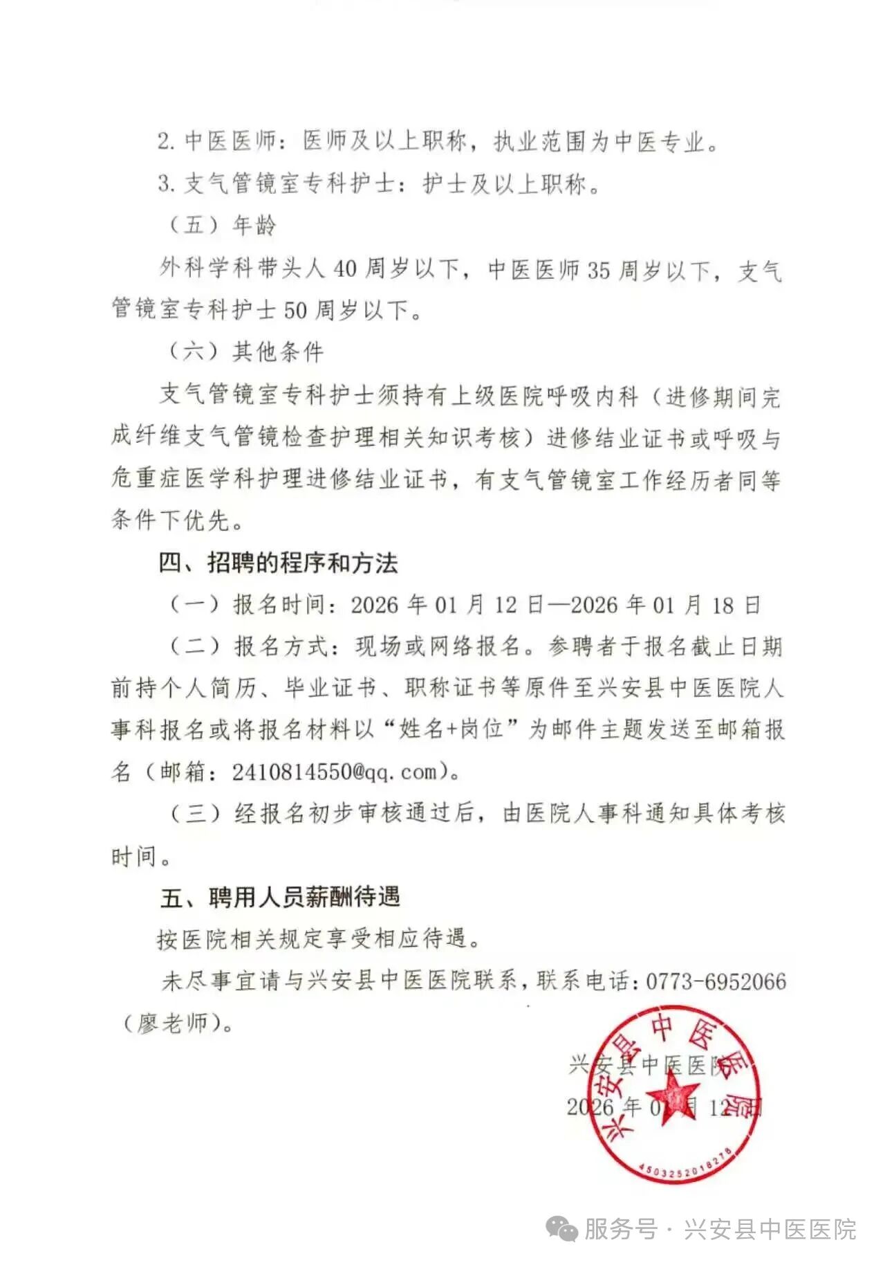 2026年興安縣中醫(yī)醫(yī)院招聘醫(yī)護人員的公告