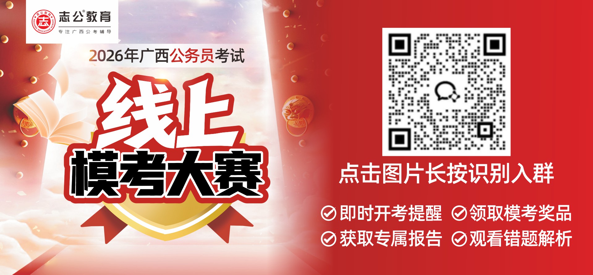 趕緊分享給身邊一起備考的小伙伴,組隊參賽、互相監(jiān)督,用一場高質(zhì)量??紮z驗備考成果,沖刺2026年廣西區(qū)考!如有疑問可在社群咨詢客服,我們?nèi)虨槟阕o航~