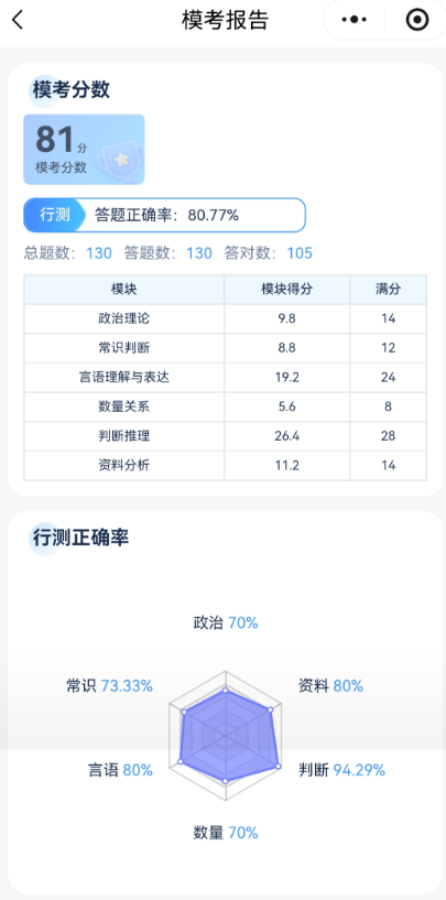?智能個性化報告:考后自動生成答題分析,精準標注薄弱模塊、正確率詳情,讓你清晰知道 “哪里會、哪里差”。