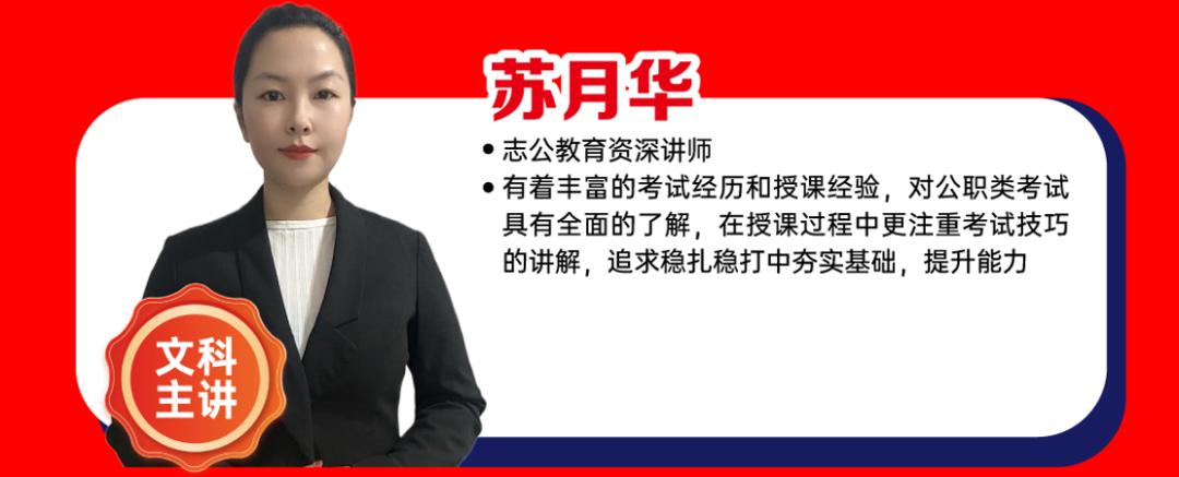 ?有著豐富的考試經(jīng)歷和授課經(jīng)驗,對公職類考試具有全面的了解,在授課過程中更注重考試技巧的講解,追求穩(wěn)扎穩(wěn)打中夯實基礎(chǔ),提升能力。